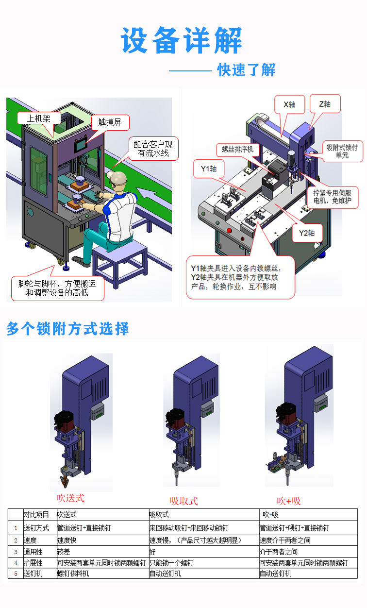 供釘方式氣吹式或吸附式視螺絲規格選擇合適的供釘方式