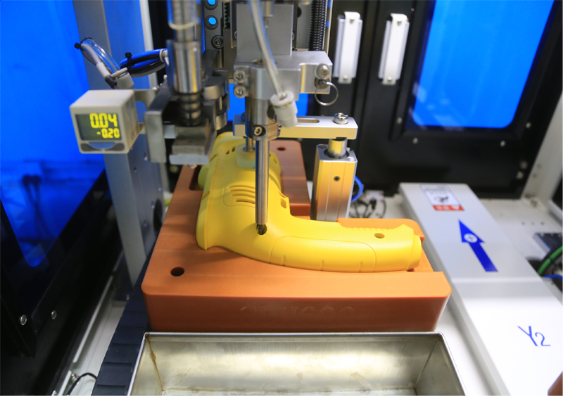 而手電鉆自動鎖螺絲機(jī)則是根據(jù)用戶的使用要求,定制好相應(yīng)的設(shè)備方案后,由客戶進(jìn)行最終確認(rèn)后開始采購物料組裝。自動鎖螺絲機(jī)應(yīng)用于產(chǎn)品上的螺絲擰緊,它可以準(zhǔn)確地定位螺孔位置,然后由氣管吹送至鎖附機(jī)構(gòu)后,進(jìn)行螺絲擰緊動作。不僅速度快,且鎖附效率穩(wěn)定。