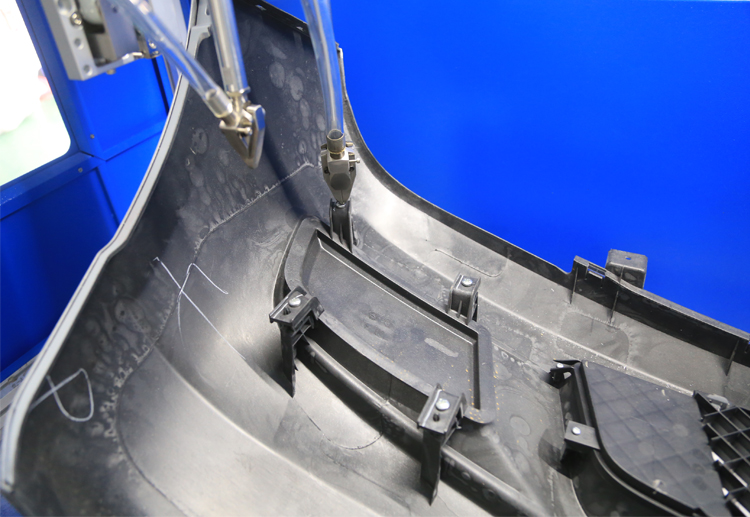 汽車保險杠鎖螺絲設備,選用坐標式機械臂鎖螺絲的方式。將產品放置在設備上固定后,按下啟動鍵,就可以根據程序設定的位置進行螺絲自動供料,鎖附等動作。